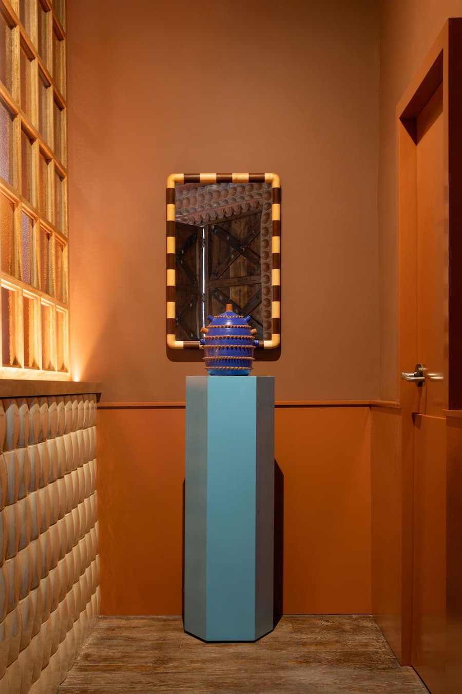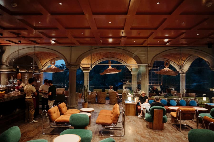 藝術也並非只是裝飾品,而是不可或缺的一部分。在創意機構Productora的藝術家Nef Espino 的指導下,三聯壁畫以像徵性的景觀包裹著整個房間,將帕迪拉家鄉洛斯阿爾托斯德哈利斯科州的植物與她墨西哥香草雞尾酒單上的植物元素融為一體。櫃檯上,羅門德斯的雕塑器皿將不起眼的牛奶罐改造成當代的圖騰,戲謔地暗指該地區的乳製品行業。