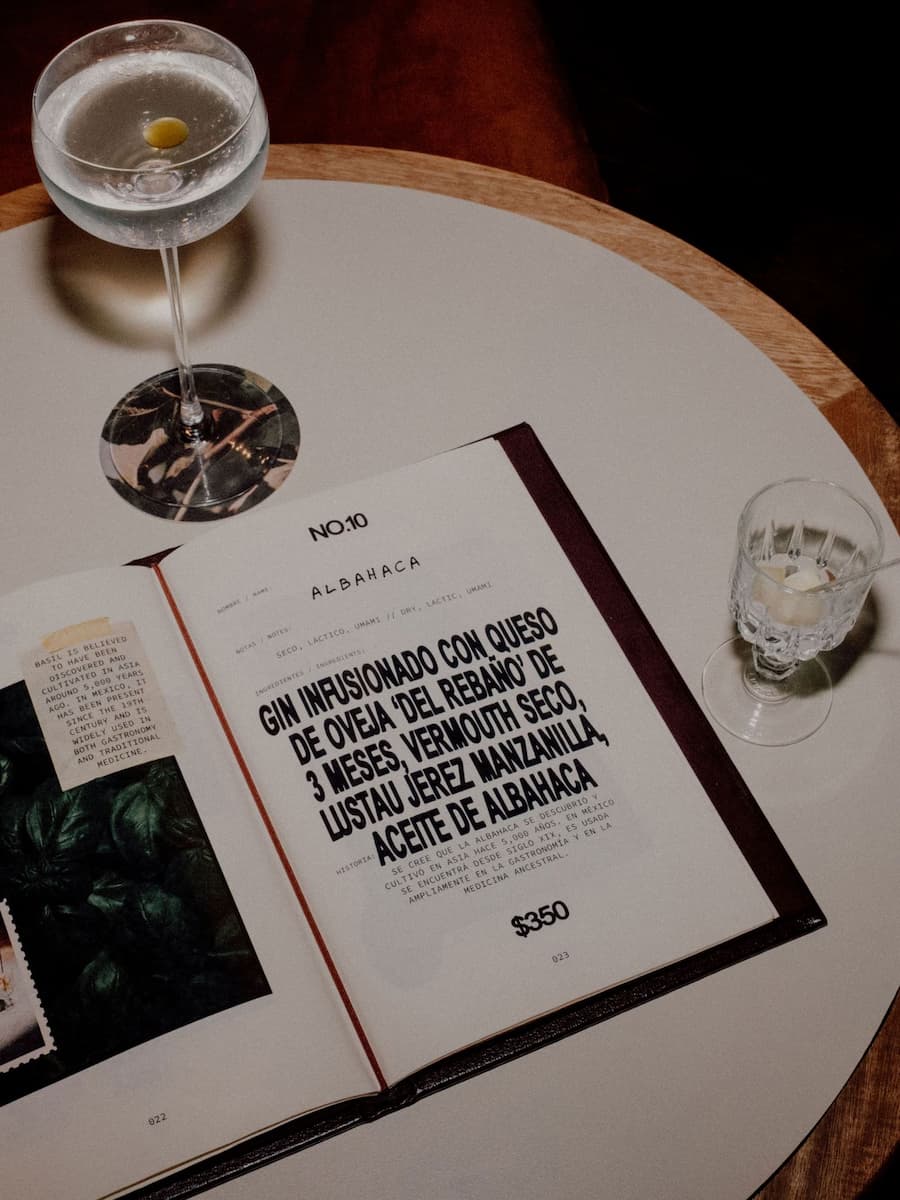 正如餐廳室內設計將傳統與創新交織,Padilla 的雞尾酒系列在致敬藥用植物智慧的同時,也融入了現代的精準調配。靈感來自祖母在洛斯阿爾托斯德哈利斯科州調製的雞尾酒,她運用澄清、浸泡和凍乾等技術,重新演繹了祖傳配方,融入當地植物。每款雞尾酒都以其主要成分命名,帶來一場感官體驗,時而清新細膩,時而複雜濃鬱,但始終是對墨西哥草藥傳承的頌揚。