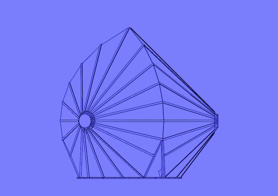 三把傘狀造型以中心軸為中心向外輻射,形成萬花筒般的幾何圖形,隨著視角的變化而改變。置身其中,彷彿置身於一艘奇幻的太空船,靜靜地漂浮在宇宙中——一個既奇妙、私密又寧靜的空間。馮氏將客家傳統元素重塑為空間形式,邀請觀眾不僅觀看,更融入作品之中,體驗其所蘊含的聚集、守護和充滿想像力的逃離的氛圍。