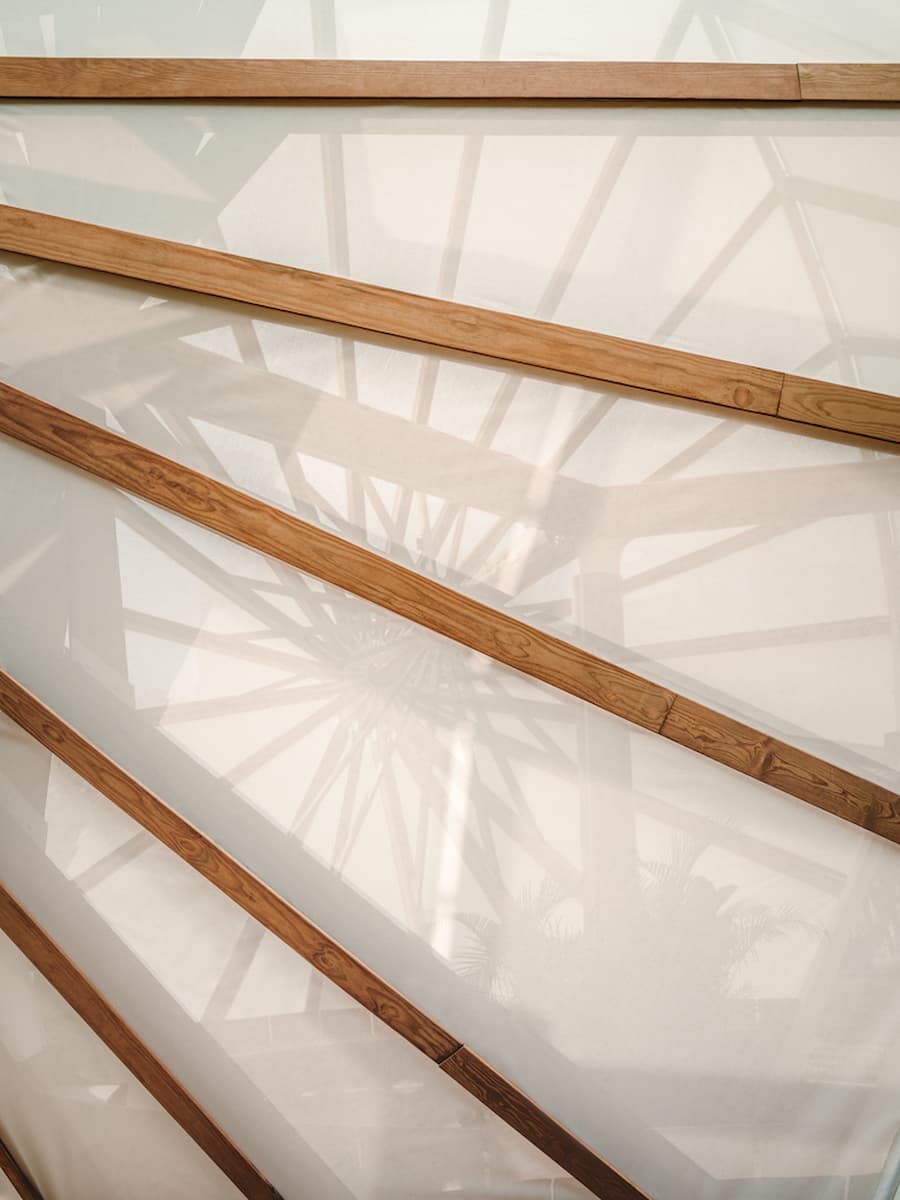受這種層層象徵意義的啟發,以將傳統工藝轉化為當代結構美學而聞名的藝術家鄭宗峰,以傘為創作核心主題。他將傘擴展為三個巨大的輻射狀傘蓋如同防護盾一樣水平展開。它們共同構成了一個大型建築裝置邀請參觀者駐足其下,駐足休憩,共享片刻寧靜。