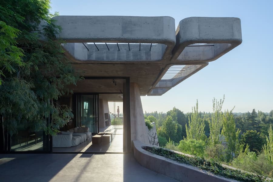 最純粹的粗野主義以原始的混凝土、結構的真實性、紀念碑式的存在感以及與景觀的親密對話為特徵。位於阿根廷安第斯山脈山麓的「粗野誠實」住宅,由倫敦OF. Studio 設計,完美契合了上述所有要素,卻又獨具匠心。它摒棄了粗野主義通常所特有的僵硬幾何形狀,轉而採用曲線牆面、圓潤轉角和柔和邊緣的設計,賦予了項目一種詩意、近乎夢幻般的質感。最終呈現的建築既根植於粗野主義的精神,又擺脫了其正統觀念。