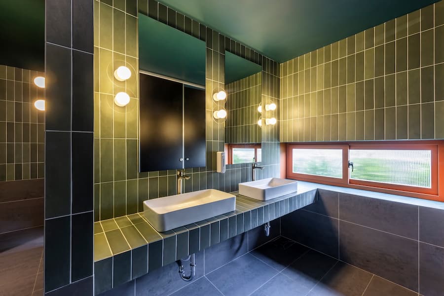 室內設計巧妙地運用木材、水磨石、素混凝土和手工瓷磚等天然材料,將傳統與現代風格融為一體,營造出簡約親切的氛圍。鏡面和玻璃元素的巧妙運用,不僅提升了空間體驗,還巧妙地遮蔽了原有的結構柱,營造出開放而和諧的室內空間。