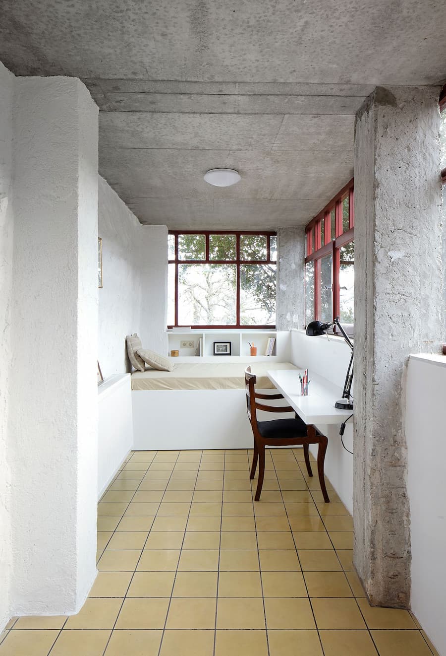 與 Point Supreme 的其他項目一樣,富有表現力的配色方案為原本內斂的色調和粗獷的飾面增添了活力,其靈感源自門窗原有的芥末黃、開心果黃和陶瓷紅色調。從木質「Bantas」的紅色板條,到廚房的橄欖綠櫥櫃和天藍色沙發床,再到與日光浴室融為一體的蛋黃小廚房,一系列精心佈置的元素增添了溫暖的氛圍和一絲意想不到的驚喜。即使是拱形的臥室壁龕也鋪設在薄荷綠的地板上,而鈷藍色的衣櫥則為相鄰的浴室增添了活力。