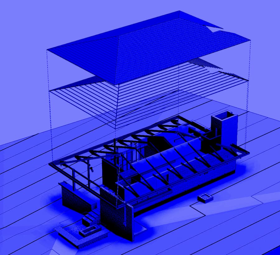 在土地清理過程中,人們發現了大量石料。這些石料足以建造一座房屋,由此形成了兩種截然不同的建築類型:用石頭砌成的藍屋和用粉刷過的磚塊砌成的黃屋。房屋的主色調也體現在屋簷、窗框、門和水管上。