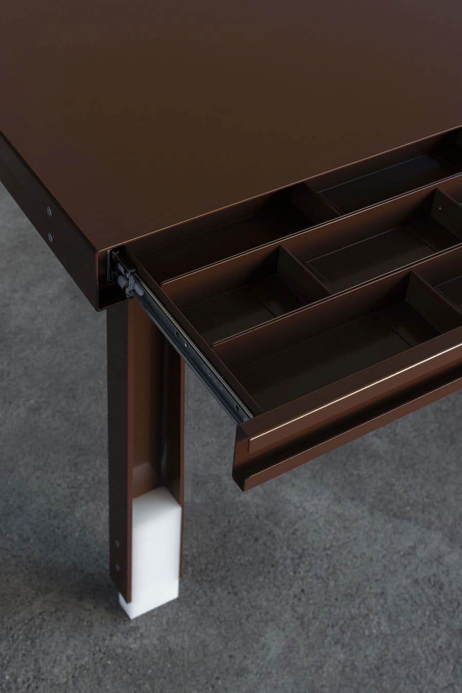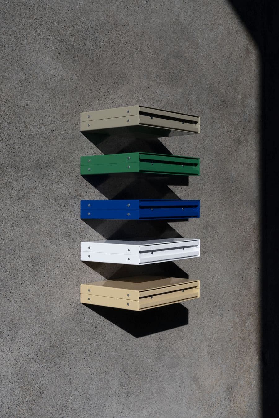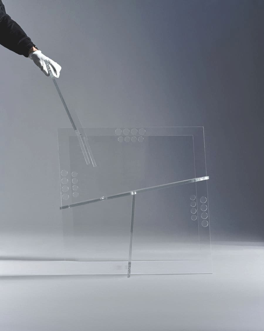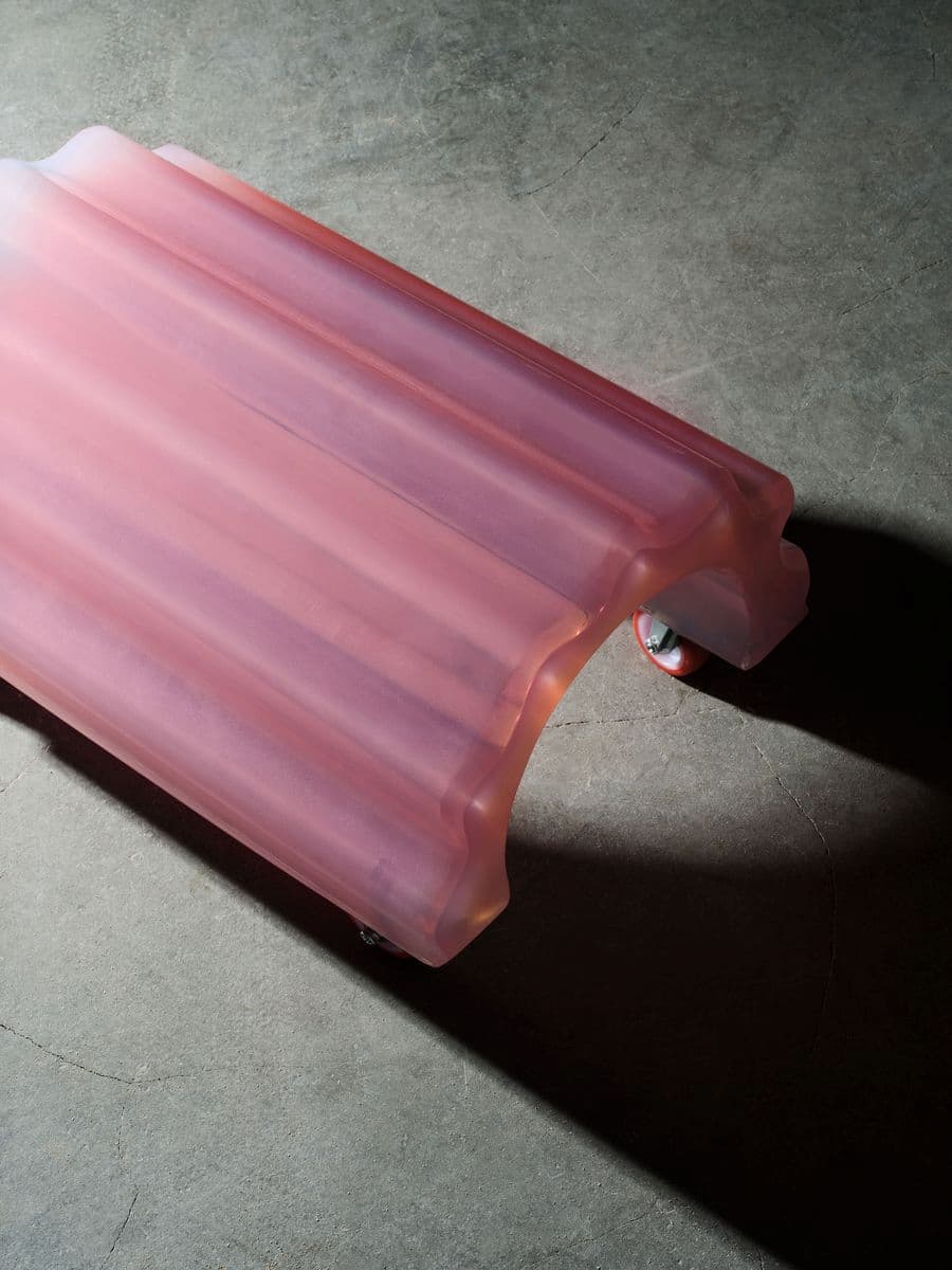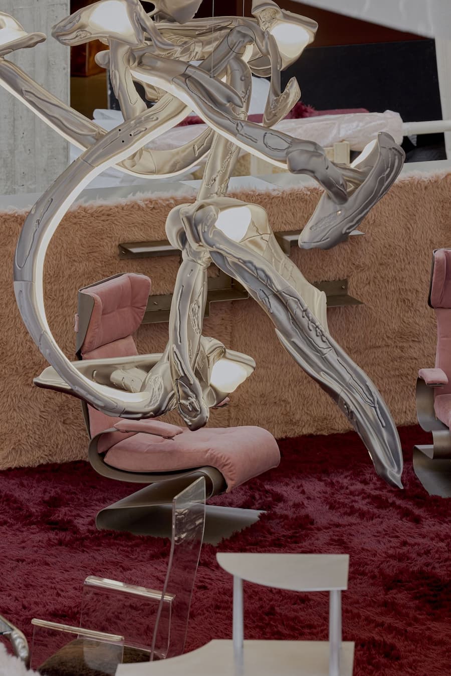 最後,我們想特別提及在Capsule Plaza第三屆「Expanded Living」展覽上吸引我們眼球的兩個風格迥異的項目。第一款是 Philippe Malouin 和Lehni設計的極簡風格Bent Aluminium系列桌子、邊桌和置物架(由Salon 94 Design在 Satellite Venue 2 展出),該系列作品在技術精準性和比例協調之間取得了完美平衡。每件作品均由折疊的金屬板製成,看似簡潔,實則蘊含著諸多精心設計的細節,例如隱藏的鑄造尼龍塊,它們巧妙地支撐著整個結構,盡顯優雅。