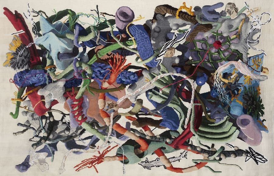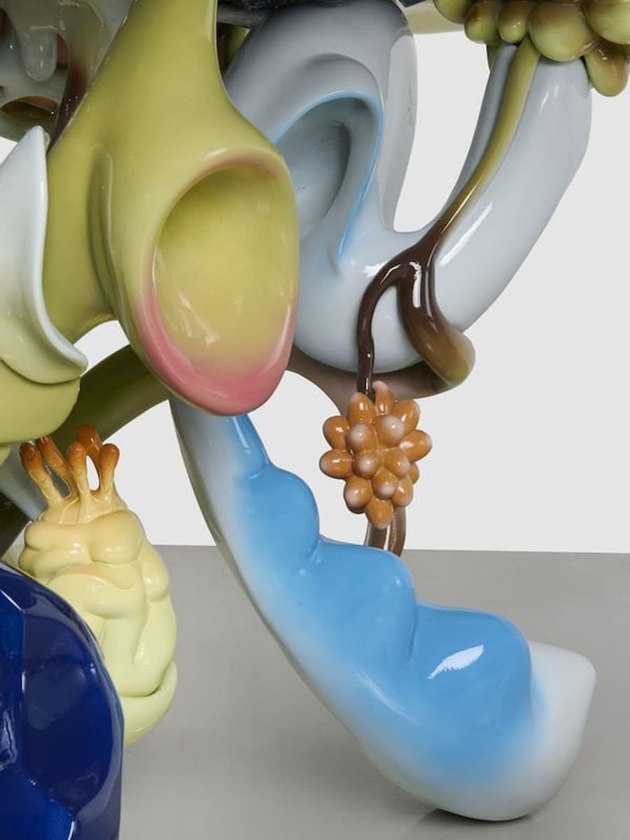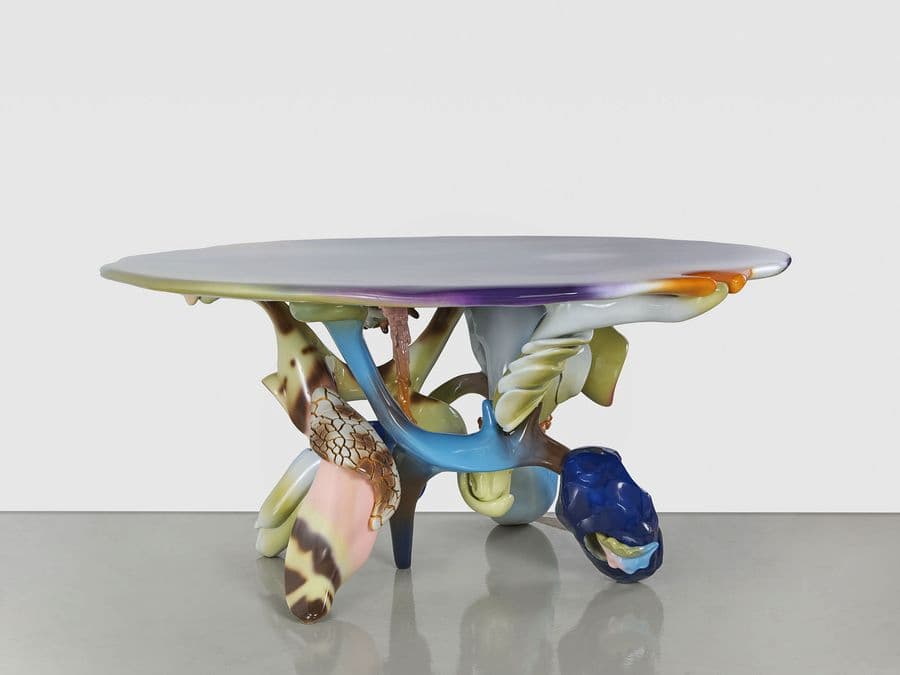 另一方面,米沙·卡恩(Misha Kahn )天馬行空的新作(由弗里德曼·本達畫廊呈現,同樣在膠囊廣場的衛星展廳2展出)則盡情展現了其歡欣雀躍的奔放。例如,《磷蝦的喜悅(最後時刻)》是一張用玻璃纖維3D打印而成、並以汽車漆塗裝的餐桌,捕捉了海洋生物在極致幻想中超現實的、扭動的能量。 一件作品是對平衡的克制與技術精湛的實踐;另一件作品則是材料與技法歡快而近乎無政府主義的碰撞。米蘭一如既往地包羅萬象,而正是這種對立的碰撞,才使其如此令人振奮。