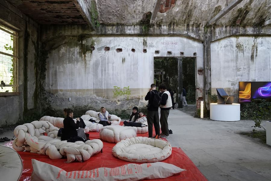 在帕西諾玻璃屋,一個被自然緩慢恢復一半的空間裡,我們被波蘭設計師馬爾欽·魯薩克的《幽靈蘭花》所吸引,這是一系列令人難忘的可生物降解雕塑,回應了該地的植物歷史;還有OoCI的《柔軟的地平線》,它以一種俏皮的、近乎超現實主義的方式重新思考了大理石作為一種可塑的大理石材料。