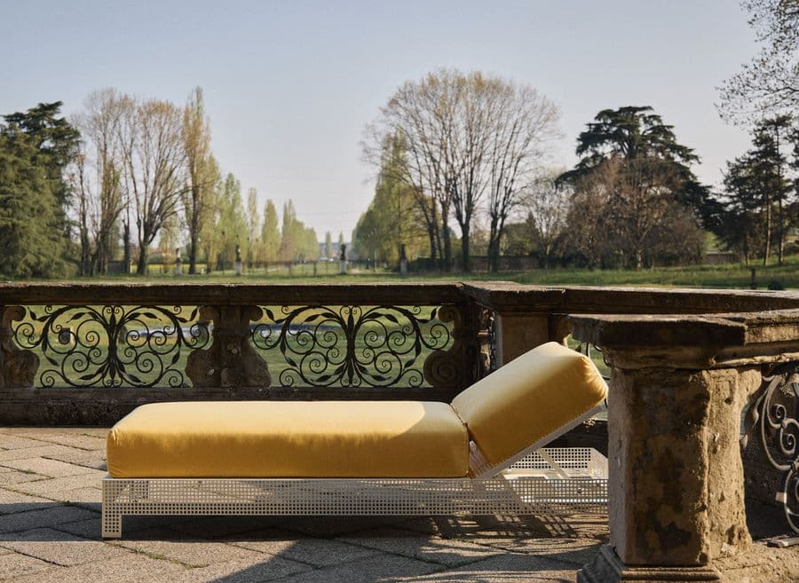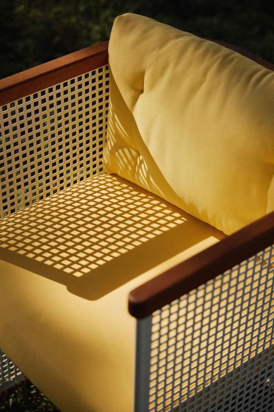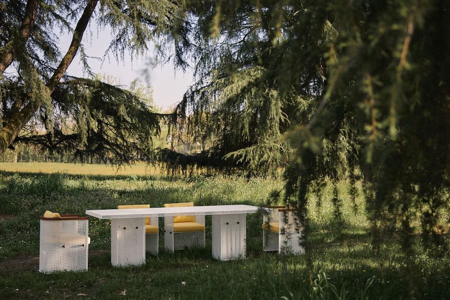 我們也愛上了Lemon和Yaniv Chen設計的Conservatory 系列,他們精緻的戶外家具在 Villa Borsani 的花園裡翩翩起舞,宛如穿孔鋼板上靜謐的詩篇。