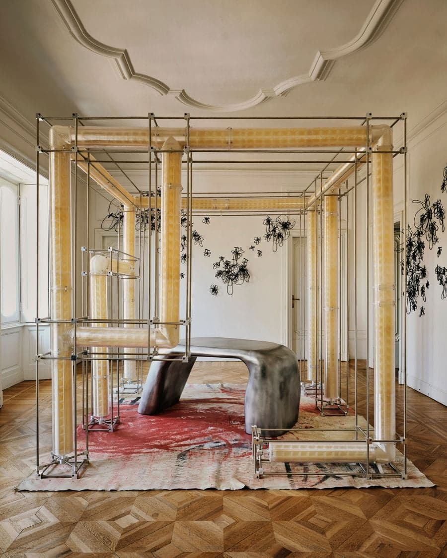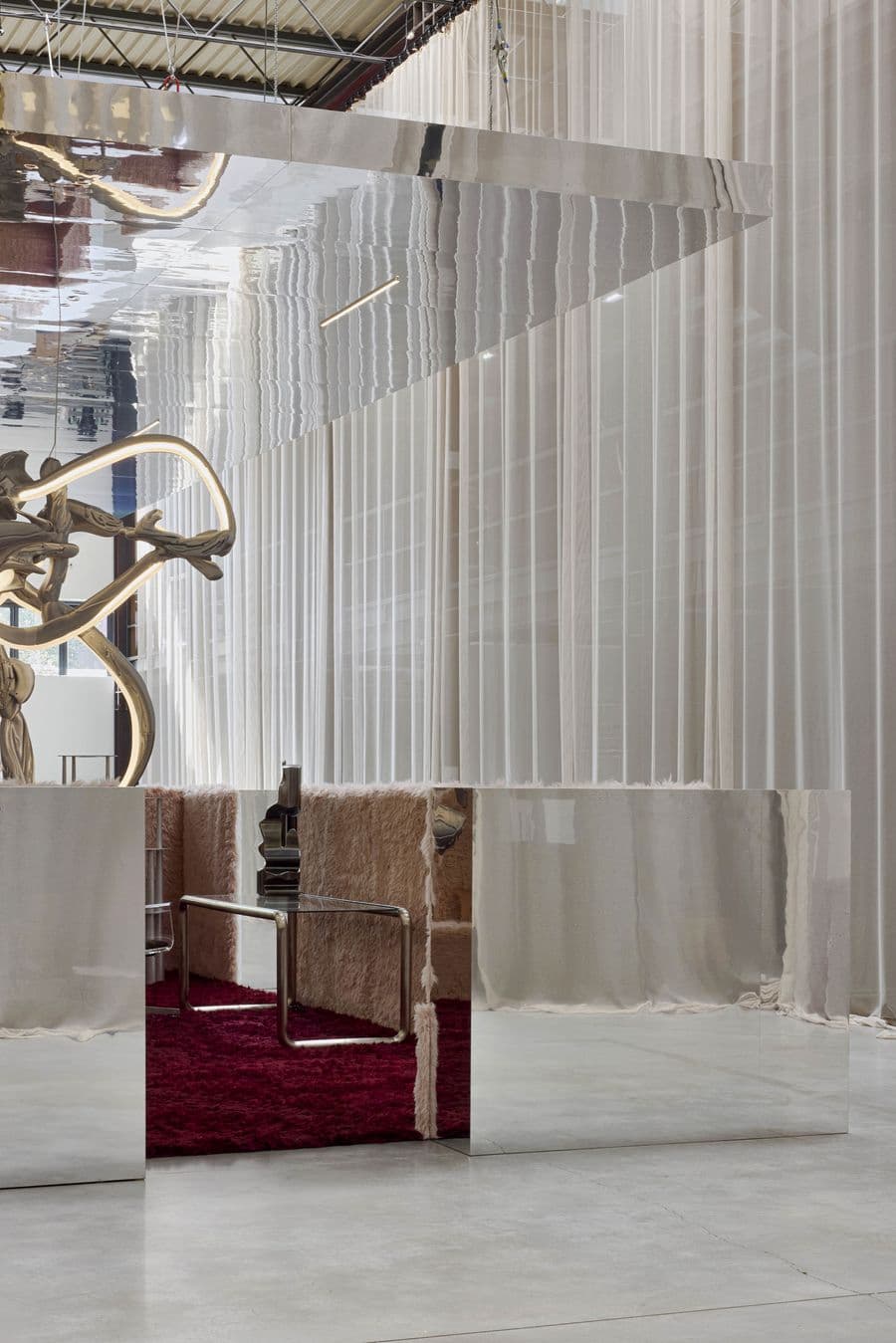 在Nilufar Depot, Nina Yashar以名為“Silver Lining”的展覽慶祝了該場地成立十週年。這件由Fosbury Architecture設計的奢華裝置作品靈感源自20世紀70年代,頌揚了金屬的表現力。在單色背景的襯托下,Gio Ponti和Gabriella Crespi等標誌性設計師的復古珍品與Audrey Large、Supaform、studiooutte等當代藝術家的作品交相輝映,模糊了時間和美學的界限。